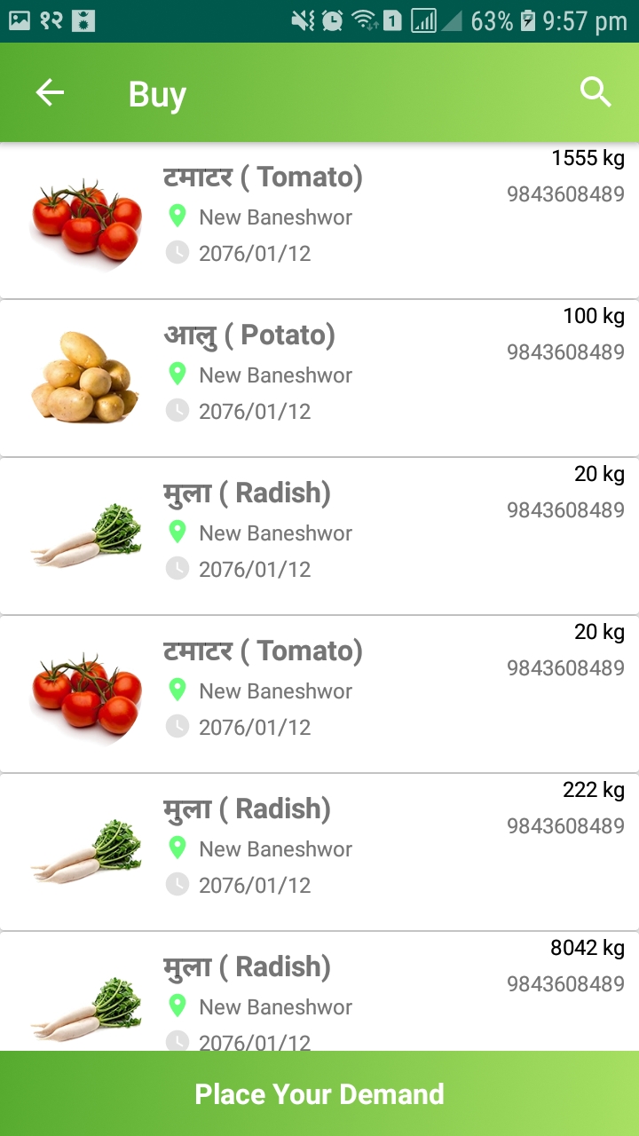 This application helps the producers to reach their perishable products promptly to the market. And the buyers can easily identify the products within their locality and get the products directly in short contact. Thus, it will give the farmers knowledge about the market demand which can be applied for their production in terms of quantity and variety and similarly, the buyers to find the appropriate sellers in terms of price and location.